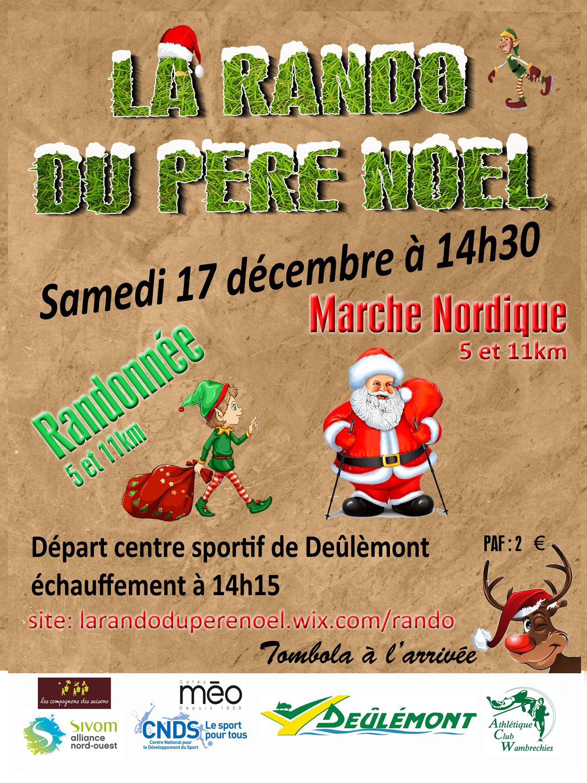 Samedi 17 : 14h30 : Rando du Père Noël organisée par l’Athlétique Club de Wambrechies en partenariat avec le service « Animations et Patrimoine »du SIVOM Alliance Nord Ouest dans le cadre des « Rencontres de la marche nordique dans le Nord ».